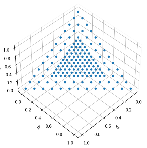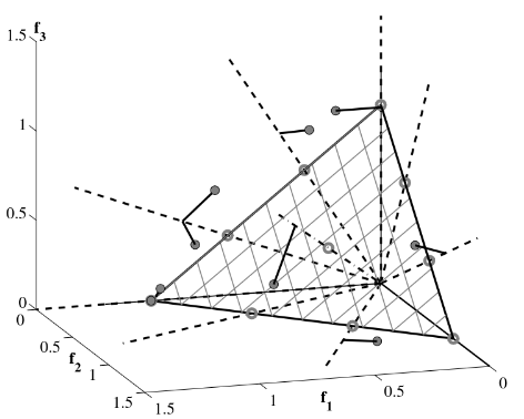 (...) we use Das and Dennis’s [48] systematic approach that places points on a normalized hyper-plane – a (M − 1)- dimensional unit simplex – which is equally inclined to all objective axes.